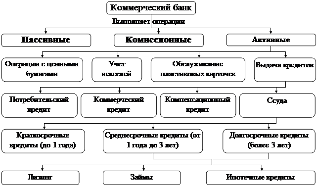 Ипотечный кредит является активной операцией коммерческого банка и пассивной операцией получателя кредита. Для выявления места ипотечного кредитования в системе активных операций банка рассмотрим структуру операций банка (рис. 2.11) . На основании приведенной схемы, по нашему мнению, можно сделать вывод, что ипотечные кредиты относятся к средне- и долгосрочным кредитам, выдаваемым банками юридическим и физическим лицам.