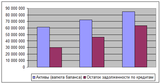 Рис. 3.2. Удельный вес кредитных вложений в общей сумме активов