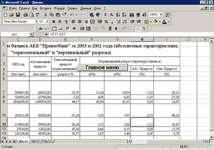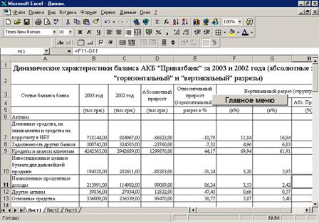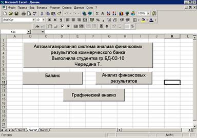Разработанная система анализа финансовых результатов коммерческого банка реализована средствами пакета Excel 97. Реализация программного обеспечения средствами табличного процессора Excel позволяет наглядно проиллюстрировать все информационное обеспечение, быстро и удобно корректировать необходимые данные, защищать их от несанкционированного доступа.