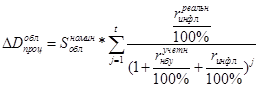 Поскольку облигации ПОВД – процентные, то возможно по ним будут выплачены проценты по реальным ( не прогнозным) ставкам инфляции, что дает дополнительную дисконтированную доходность облигации, рассчитываемую по формуле :