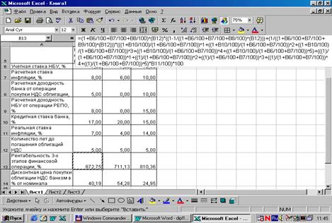 Формула (5.1) показывает уровень цены приобретения банком облигации НДС, которая соответствует через 3 года при погашении облигации по номиналу эквивалентной доходности вложенной в покупку облигации суммы при ее вложении в альтернативные финансовые инструменты.