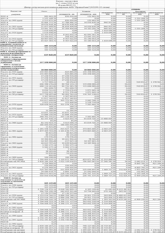 Таблица А.1 – Внебалансовые счета баланса АКБ «Приватбанк» на 01.01.2003
