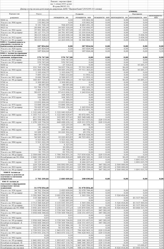Таблица А.3 – Внебалансовые счета баланса АКБ «Приватбанк» на 01.01.2001