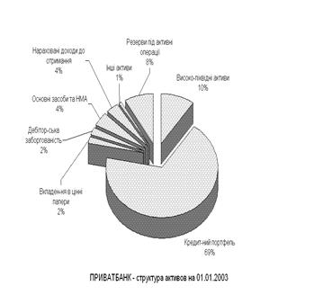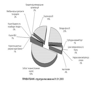 Рис.2.1 Структура активов и пассивов АКБ «Приватбанк» в 2002 году