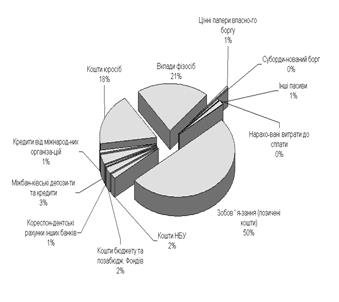 - собственные ценные бумаги в обязательствах занимают в 2002 году долю в 0,3% (депозитные сертификаты и собственные облигации) по сравнении с долей 1,38% в среднем по банковской системе Украины;
