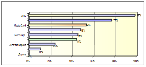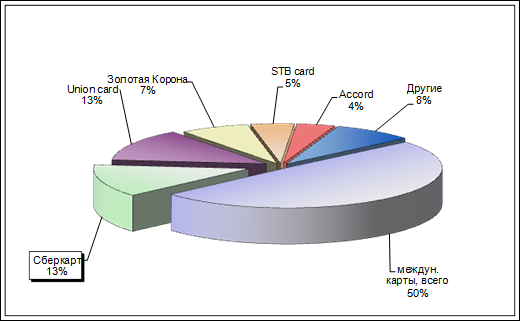 Рис. 3.4. Доли платежных систем на рынке банковских карт России.