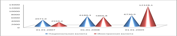 В абсолютном выражении за анализируемый период кредиты на потребительские нужды увеличились с 5250,9 млн.руб. на 78852,9 млн. руб. и к 2009 году составили 14103,8 млн. руб.
