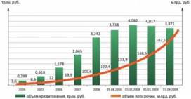 В условиях когда рынок потребительского кредитования развивается стремительными темпами, у участников этого рынка увеличиваются объемы просроченной дебиторской задолженности. На 1 апреля 2009 года объем кредитования физических лиц составил 3,871 трлн. рублей. Объем просроченной задолженности по кредитам физических лиц на 1 апреля 2009 года составил - 182,1 млрд. рублей. Общая доля просрочки по кредитам физических лиц на 1 апреля 2009 года - 4,7%. (на 01 апреля 2008 – 3,3%). За первые три месяца 2009 года прирост просрочки составил 22,6%.