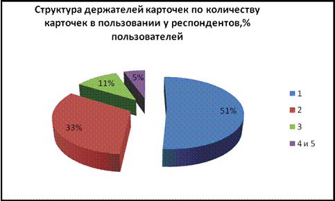 Рис. 3.1. Структура держателей карточек по количеству карт в пользовании у респондентов.