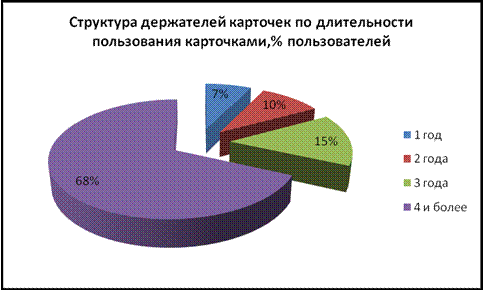 Рис. 3.2. Структура держателей карточек по длительности пользования.
