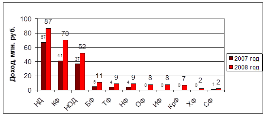 Рис.15 – Фактический доход от работы с пластиковыми картами за 2007/2008 г.г.