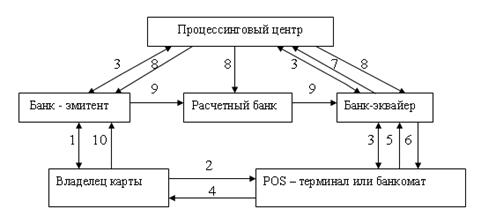 Порядок осуществления расчетов с использованием пластиковых карт можно представить в виде схемы (см. рис.1).