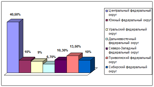 Рис. 7 – Распределение держателей банковских карточек по федеральным округам[10]