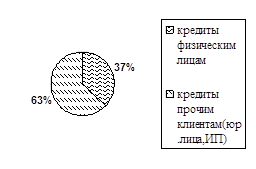 Несмотря на то, что сумма кредитной задолженности юридических лиц и индивидуальных предпринимателей (в таблице 2.1 эти категории кредитополучателей обозначены как "прочие клиенты") снизилась в 0,9 раз, т.е. на 1170451,9 тыс.руб., однако вместе с этим возросла в 1,5 раза (или на 3190998,5 тыс.руб.) сумма кредитной задолженности физических лиц.