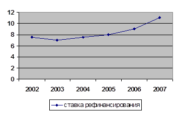 Сведения о ставках рефинансирования и динамика ее изменения за последние пять лет оформлены в таблице 1 и изображены на рисунке 1.