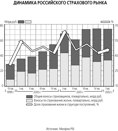 Рисунок 5. Динамика Российского страхового рынка 1999-1 кв. 2002 г.