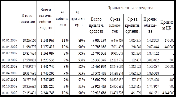 По данным таблицы 1 очевидно, что процент привлеченных средств в ресурсах ОАО "Дальневосточный банк" составляет подавляющее большинство, примерно 90%.