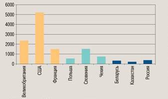 Рисунок 1 - Количество банковских карт на 1 тыс. жителей (по данным 2005 года)