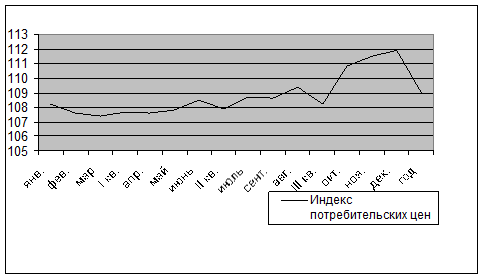 Рис.2 Динамика индекса потребительских цен (в % к соответствующему периоду предыдущего года)
