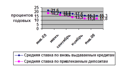 Рис. 2.7 Динамика процентных ставок по кредитам и депозитам
