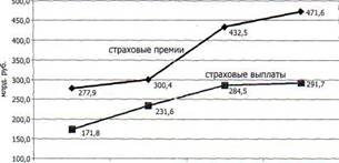 Аналогичная картина наблюдается и в отношении совокупных страховых выплат, которые составили в 2004 году 291,7 млрд. руб. и увеличились на 2.5% по сравнению с предыдущим годом. Разрыв между темпами роста страховых премий и выплат в 2004 году не так велик, что также может указывать на качественное улучшение ситуации на российском страховом рынке по сравнению с предыдущим годом, принимая во внимание, что коэффициент выплат и уровень убыточности на рынке традиционно является неадекватно низким. В свою очередь, в 2003 году разрыв между темпом роста страховых премий (44%) и страховых выплат (22,8%) составлял 21,2 процентных пункта, что на фоне значительного роста страховых премий по страхованию жизни указывало на активное участие страховых организаций в оптимизации налоговой нагрузки российских предприятий.