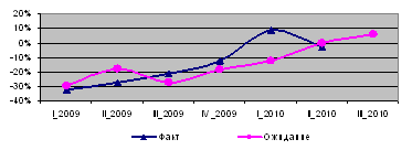 При этом реальный сектор экономики более болезненно отреагировал на последствия мирового кризиса. Поквартальная динамика объема производства товаров, по оценке Национального Банка, продемонстрировала начало падения данного компонента в 3 квартале 2008 года, которое, продолжаясь на протяжении 4 периодов, лишь в 3 квартале 2009 года вышло на нулевой показатель роста, в то время как объем производства услуг снижался лишь на протяжении 1, 2 и 3 кварталов 2009 года. В итоге оба компонента отметились значительным ростом в 4 квартале 2009 года, который «вытянул» в положительную зону годовой показатель ВВП.