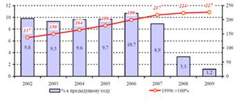 Начиная с 3 квартала 2009 года, наблюдается некоторое восстановление экономического роста, которое компенсировало существенное снижение реального ВВП в первом полугодии 2009 года. По предварительным итогам 2009 года реальный ВВП увеличился на 1,1%. Несмотря на то, что в 2009 году темпы экономического роста были ниже, чем в 2007-2008 годах, меры государственной поддержки позволили восстановить позитивные ожидания субъектов экономики и стабилизировать экономическую ситуацию.