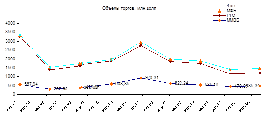 Различия в объемах торгов на биржах сложным образом связаны с различиями клиентуры и характером операций. Считается, что на РТС, где торговля ведется в долларах, оперируют, в основном, инвестиционные банки, работающие с пакетами акций российских предприятий. В то же время на ММВБ доминируют российские капиталы и российские биржевые игроки. Возможно, поэтому на ММВБ существуют два разных индекса: стандартный СФИ[20] и ММВБ10[21], рассчитанный на day-трейдеров, и позволяющий отслеживать малейшие колебания цен основных финансовых инструментов.