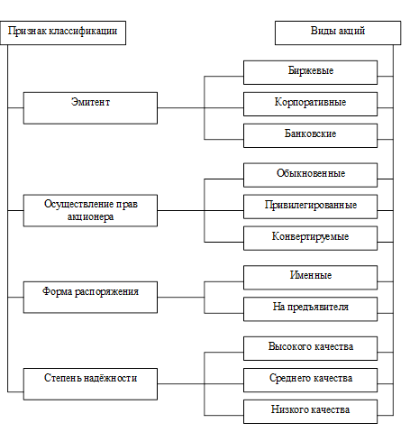 Виды акции достаточно разнообразны и различаются в зависимости от эмитента, способа реализации прав акционеров, инвестиционных качеств и других признаков. [4, 18 с.]Основные виды акций представлены на рисунке 1.1.