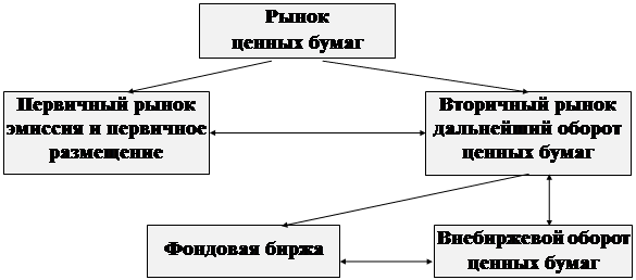 Биржевой рынок — это торговля ценными бумагами на фондовых биржах. На биржевом рынке процесс обращения ценных бумаг организуется высококвалифицированными специалистами, он имеет развитую биржевую инфраструктуру; торговля на нем происходит с соблюдением требований законодательства. Биржа устанавливает правила допуска ценных бумаг к торговле и исключения их из биржевого списка, разрабатывает порядок разрешения споров между членами биржи, посредниками в сделках и их участниками. Все биржевые сделки заключаются только в помещении биржи с обязательной их регистрацией и доведением информации до участников торгов.