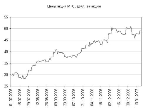 Рис.2.3 Цены акции МТС за период с (01.07.2006 - 13.01.2007)