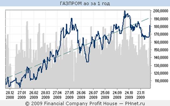 Рис. 2. Газпром, акция обыкновенная (ММВБ)