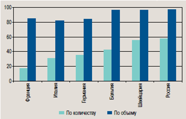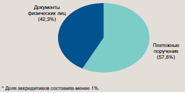 Средний размер платежа с использованием аккредитивов за 2008 год вырос в 1,8 раза и составил 9,7 млн. рублей. Сравнение с данными стран–членов Комитета по платежным и расчетным системам показывает, что в России кредитовые переводы являются наиболее активно используемым безналичным инструментом. Так, в 2008 году доля кредитовых переводов от общего количества безналичных платежей12 в России составляла 57,3%.