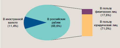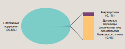 В 2008 году не произошло каких-либо заметных изменений в структуре кредитовых переводов. По прежнему основную роль в ней играли платежи с использованием платежных поручений, на долю которых приходилось около 60% от общего количества кредитовых переводов и 99,5% от их общего объема (в 2007 году – 58,0 и 99,6% соответственно). Количество и сумма платежей с использованием платежных поручений в российских рублях и иностранной валюте увеличились соответственно на 11,4 и 6,9% и за 2008 год составили более 1,1 млрд. трансакцийна сумму 696,5 трлн. рублей. Из них на платежи, совершенные юридическими лицами, не являющимися кредитными организациями, приходилось 75,6% по количеству и 43,3% по объему; на собственные платежи кредитных организаций – 8,9 и 55,6%; на платежи физических лиц – 15,5 и 1,1%. Кредитовые переводы оставались наиболее востребованным безналичным платежным инструментом. Более 40% от общего количества кредитовых переводов и 0,4% от их общего объема в 2008 году приходилось на денежные переводы физических лиц без открытия банковского счета.