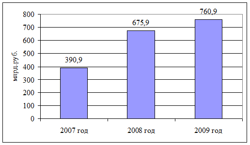 Так, динамика кредитов, выданных юридическим лицам, имеет положительное направление. В 2008 и 2009 гг. объем кредитов по отношению к предыдущему году вырос на 72,9% и 12,6% соответственно.