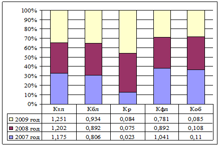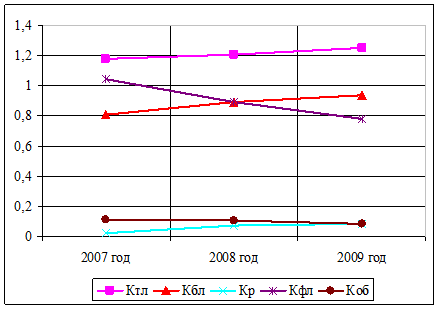 Более наглядно значения финансовых коэффициентов в их трехлетней структуре представлены на графике. (Рис. 2.2)