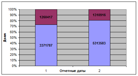 Как видно, главной составляющей активов банка являются кредиты. Их удельный вес в валюте баланса 01. 07. 2004г. - 80,21 %. Основной упор Банк «Центральное ОВК» делает на розничное кредитование, что однако должно измениться после слияния с Росбанком, который имеет репутацию крупного корпоративного кредитора. Что, правда, и не говорит о том, что доля кредитных вложений может увеличиться или уменьшится. Вполне возможно, что активы в новом банке (Росбанк) будут иметь не столь выраженный кредитный характер.