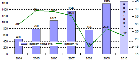 Рис.2. Прирост вкладов населения в 2004-2010гг. (млрд. руб.) млрд. руб. 1650%