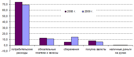 В свою очередь сократились расходы на покупку наличной иностранной валюты (с 7,9 до 5,5%), а также расходы на потребление (с 74,1 до 69,2%).