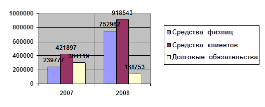 На основании этих данных можно сделать вывод о том, что основная масса клиентов банка – это предприятия и организации, хотя и физическим лицам банк уделяет много внимания, заимствуя их временно свободные денежные средства.