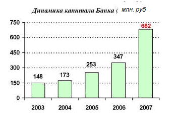 Практически двукратный рост капитала в 2007 году был обеспечен как размером полученной прибыли, так и в значительной степени проведенной в I квартале эмиссией обыкновенных акций, в ходе которой в капитал Банка было привлечено 230,2 млн рублей. По состоянию на 1 января 2008 года капитал Банка составил 681,6 млн рублей, а его доля в совокупном капитале российского банковского сектора составила 25,5% против 20,5% на начало 2007 года. Уровень достаточности капитала в результате дополнительного выпуска акций увеличился с 11,7 до 15,1%.