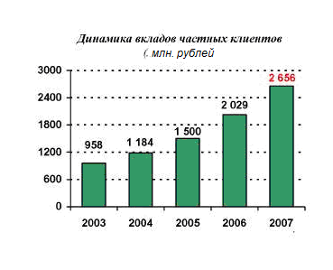 Основным источником ресурсов ОАО ГБ Нижний Новгород традиционно являются средства частных клиентов, привлеченные во вклады – их доля в привлеченных средствах превышает 62%. Средства корпоративных клиентов составляют еще около 30% привлеченных средств. Таким образом, ресурсная база ОАО ГБ Нижний Новгород формируется практически целиком за счет внутренних источников. На средства, привлеченные на международных финансовых рынках, приходится 3% всех привлеченных средств. Таким образом, возможности ОАО ГБ Нижний Новгород по увеличению работающих активов практически не зависят от конъюнктуры внешних рынков.