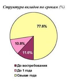 Денежные средства частных клиентов являются стабильным долгосрочным ресурсом Банка – 77,6% вкладов размещены на срок свыше года. Доля вкладов до востребования составляет 11,6%.