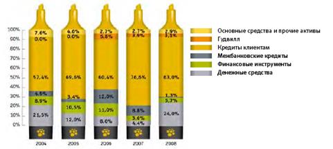 За 2008 год рост обязательств обеспечили те же показатели, но процентное соотношение было иным, а именно: