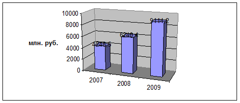 Рисунок 2.4 – Динамика изменения общего объема операций с использованием пластиковых карт за 2007-2009 гг.