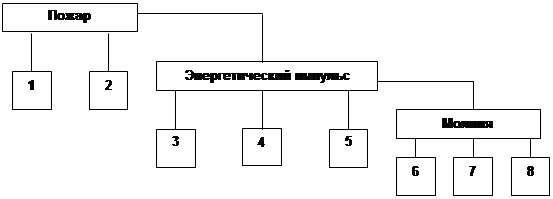 Изобразим графически (схема 5.1) такие зависимости и назовем их «деревом причин и опасностей» на примере пожара, где: