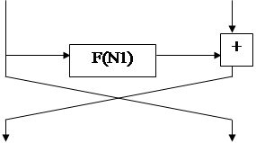 Данный алгоритм шифрует информацию блоками по 64 бита (такие алгоритмы называются «блочными»). Смысл сети Фейстеля состоит в том, что блок шифруемой информации разбивается на два или более субблоков, часть которых обрабатывается по определенному закону, после чего результат этой обработки накладывается (операцией побитового сложения по модулю 2) на необрабатываемые субблоки. Затем субблоки меняются местами, после чего обрабатываются снова и т.д. определенное для каждого алгоритма число раз – раундов.