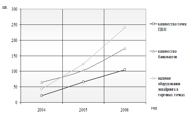 Динамика увеличения числа банкоматов, точек ПВН, и торгового эквайринга