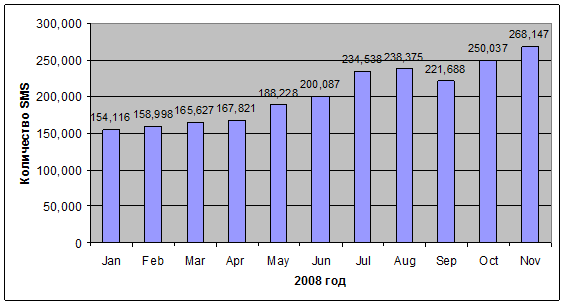 Количество отправленных Приорбанком сообщений клиентам в течение 2008 г. представлено на рисунке 3.3.