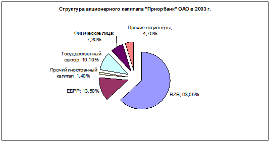 Рисунок 2.1 – Структура акционерного капитала «Приорбанк» ОАО по состоянию на 2003 г.
